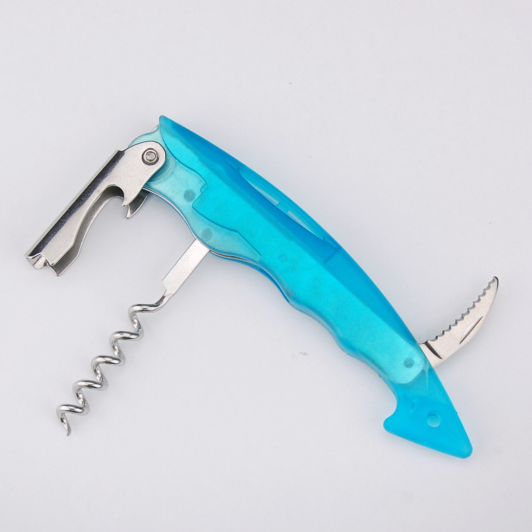 Équipé d’une lame coupe-capsule crantée et fabriqué en acier inoxydable, ce tire-bouchon est à la fois robuste et résistant à la corrosion. Le plastique ABS translucide ajoute non seulement une esthétique unique mais sert également de carapace imputrescible le protégeant de l’usure du temps.